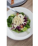 Mix greens, tomatoes, cucumbers, hard boiled egg, feta cheese, kalamata olives, drizzled with lite israeli dressing.